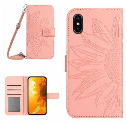 For iPhone X/XS Skin Feel Sun Flower Pattern Flip Leather Phone Case Cover with Lanyard(Pink)