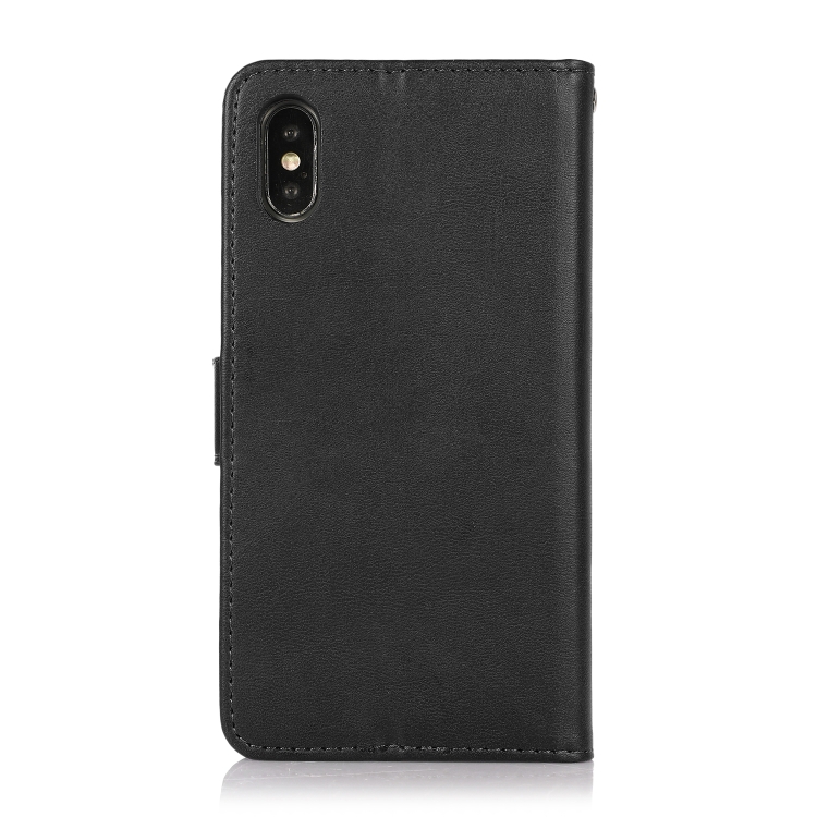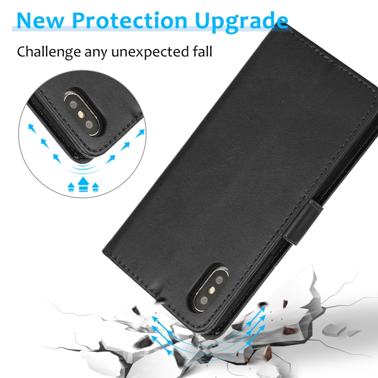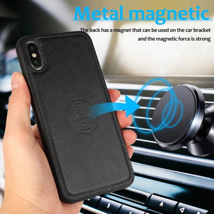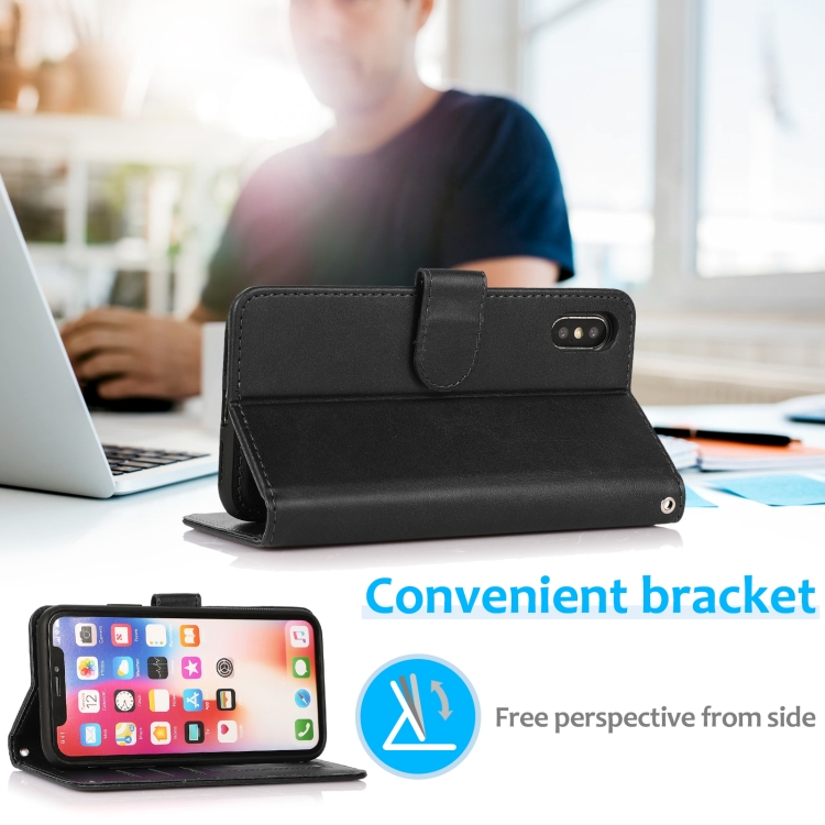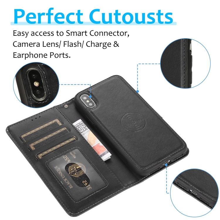 Funda para iPhone X Xs Textura de Becerro 2 En 1 Cubierta Trasera Magnética Desmontable con Tapa Horizontal Soporte Ranuras y Marco de Fotos (Negro)