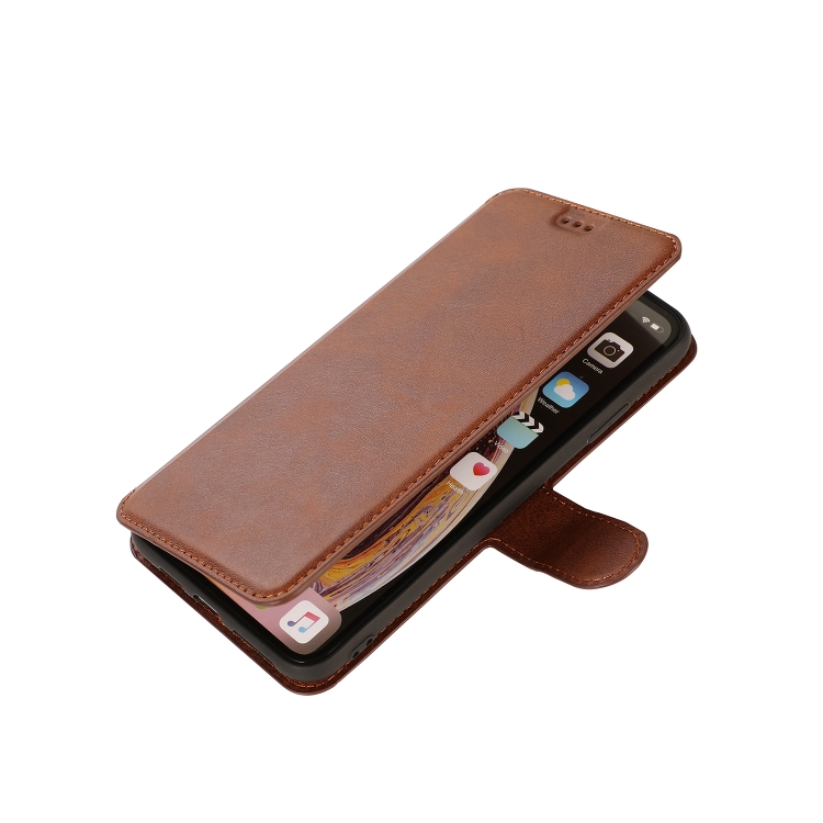 Funda de Cuero para iPhone X Xs Textura de Becerro Hebilla Magnética Tapa Horizontal Soporte Ranuras Tarjetas Billetera Marco Fotos (Rojo)