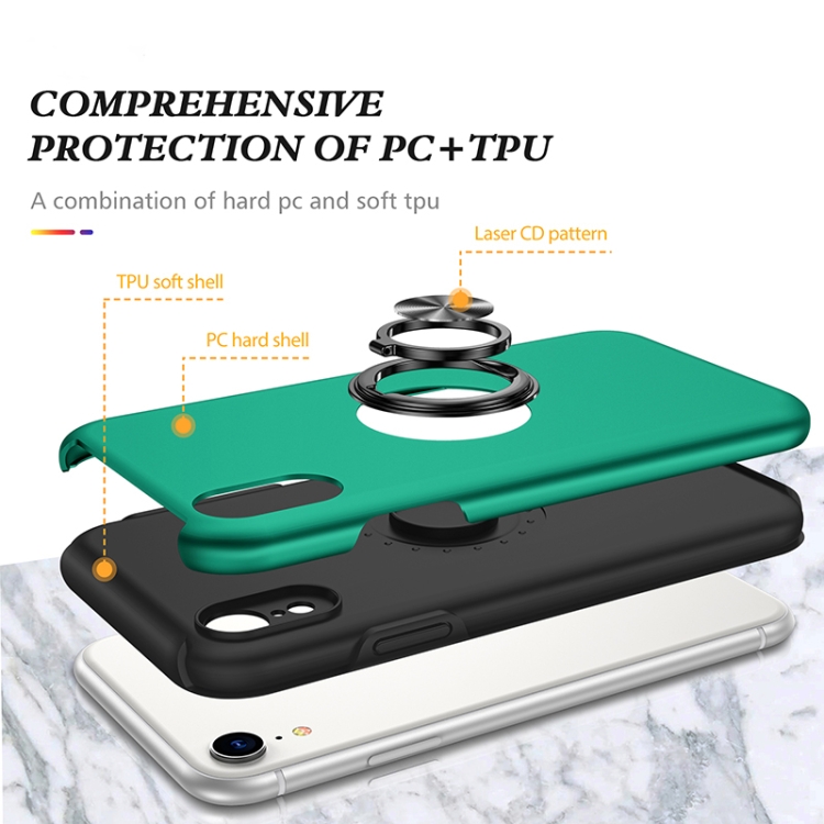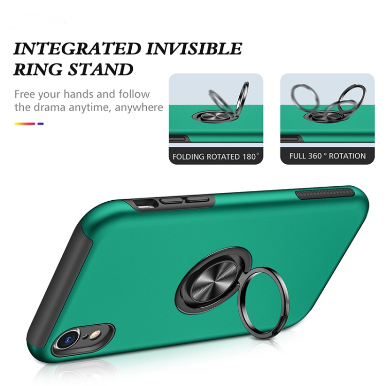 Funda para iPhone Xr Anillo Magnético Kickstand a Prueba de Golpes (Verde Oscuro)