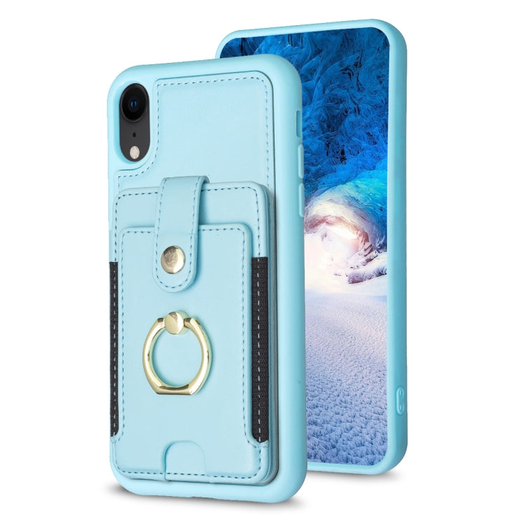 Funda de teléfono iPhone Xr Bf27 con soporte para tarjeta y anillo de metal (Azul)