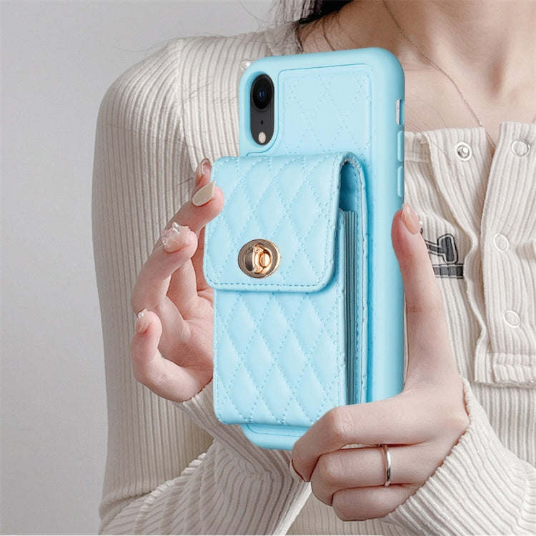 Caja de Teléfono para iPhone Xr Rombal Cuero con Hebilla de Metal Vertical (Azul)
