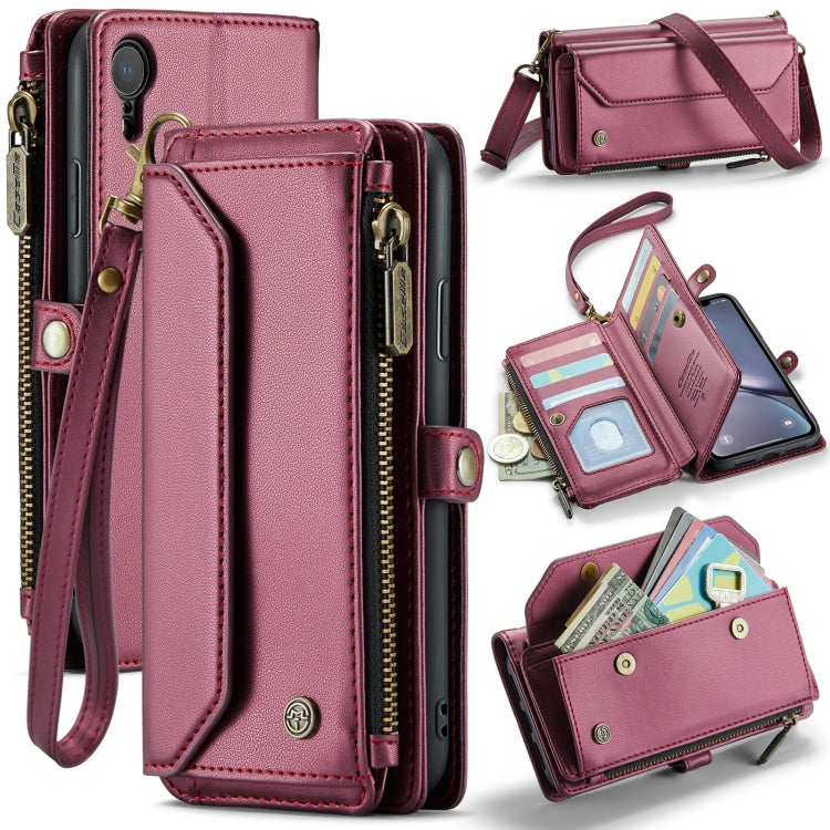 Funda para iPhone Xr Caseme C36 Cartera con Ranuras para Tarjetas Cremallera Cuero Antirrobo Rfid (Rojo Vino)