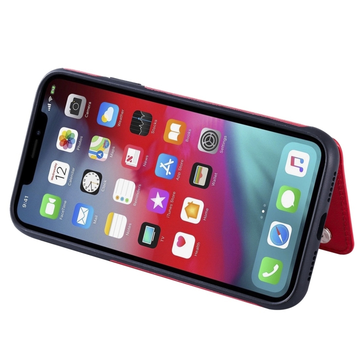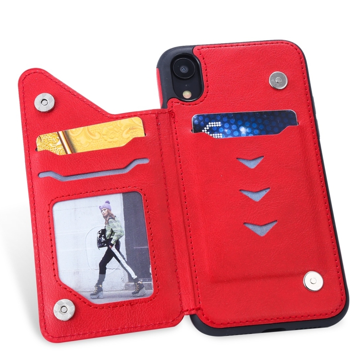 Estuche protector para iPhone Xr Cat Tree con patrón en relieve, ranuras para tarjetas y marco de fotos (Rojo)