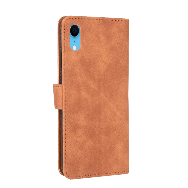 Funda para iPhone Xr Cuero PU Textura de Becerro Flip Horizontal con Hebilla Magnética Soporte y Ranuras para Tarjetas (Marrón)