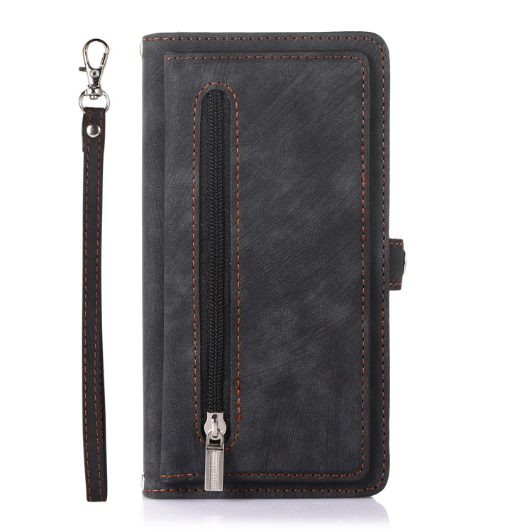 Funda de Cuero para Teléfono iPhone Xr Cremallera Ranura para Tarjeta Hebilla (Negro)