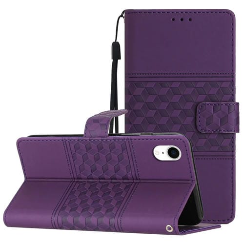 Funda para iPhone Xr Diamond Embossed Skin Feel de Cuero con Cordón (Púrpura)