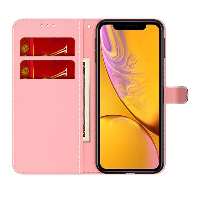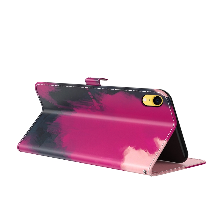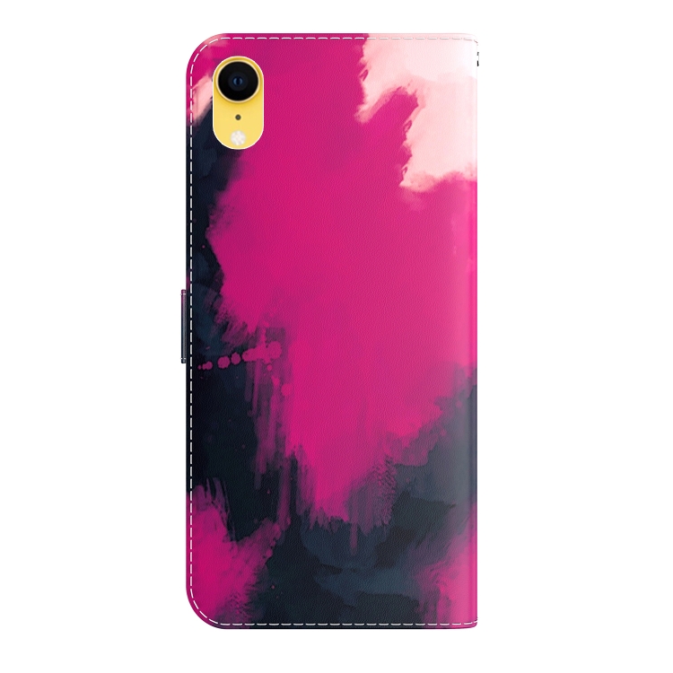 Estuche de Cuero para iPhone Xr con Tapa Horizontal, Patrón de Acuarela, Soporte, Ranura para Tarjeta y Billetera (Baya)