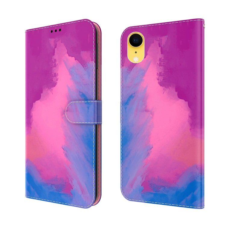 Estuche de Cuero para iPhone Xr con Tapa Horizontal Patrón Acuarela Soporte Ranura Tarjeta Billetera (Púrpura Rojo)