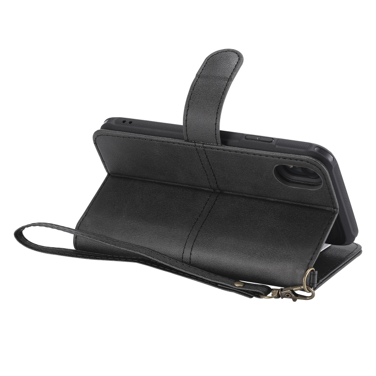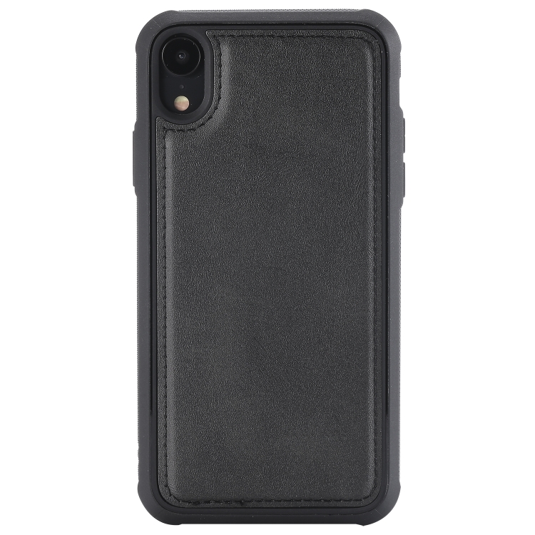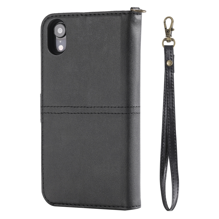 Funda de Cuero iPhone Xr con Tapa Horizontal Magnética Desmontable Multifuncional Ranuras para Tarjetas Soporte Billetera Marco de Fotos (Negro)
