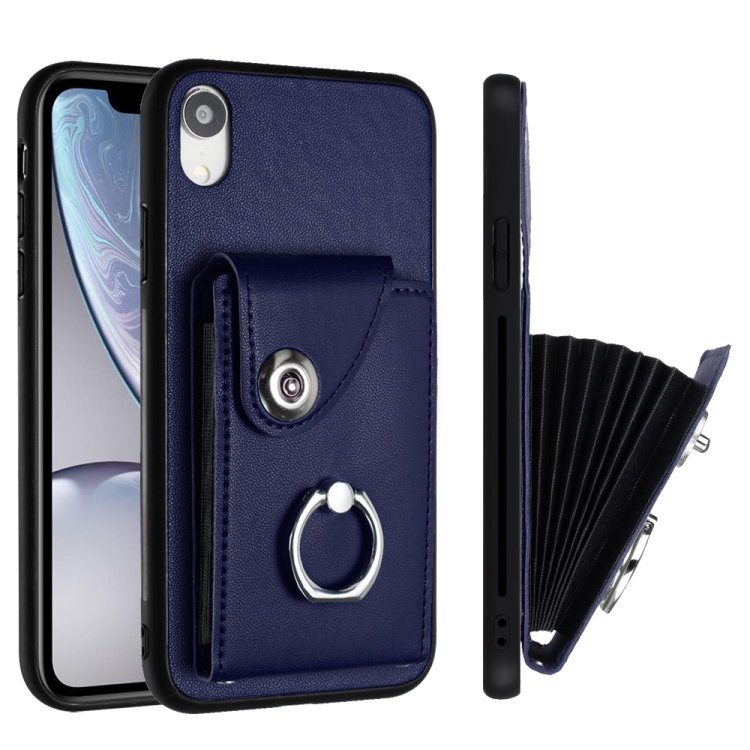 Funda para Teléfono iPhone Xr Soporte para Anillo Bolsa para Tarjeta (Azul)