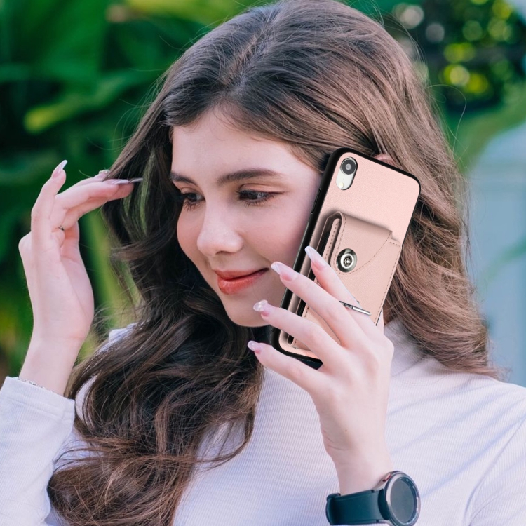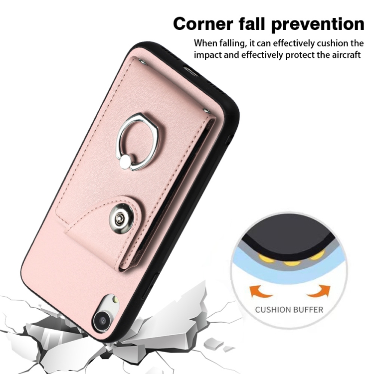 Funda para Teléfono iPhone Xr con Soporte para Anillo y Bolsa para Tarjeta de Órgano (Rosa)