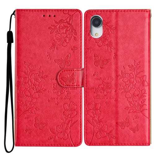 Funda para Teléfono iPhone Xr Cuero con Relieve Flor de Amor y Mariposa (Rojo)