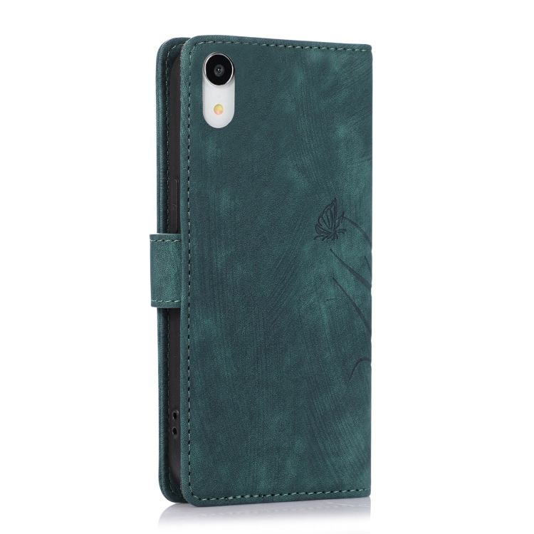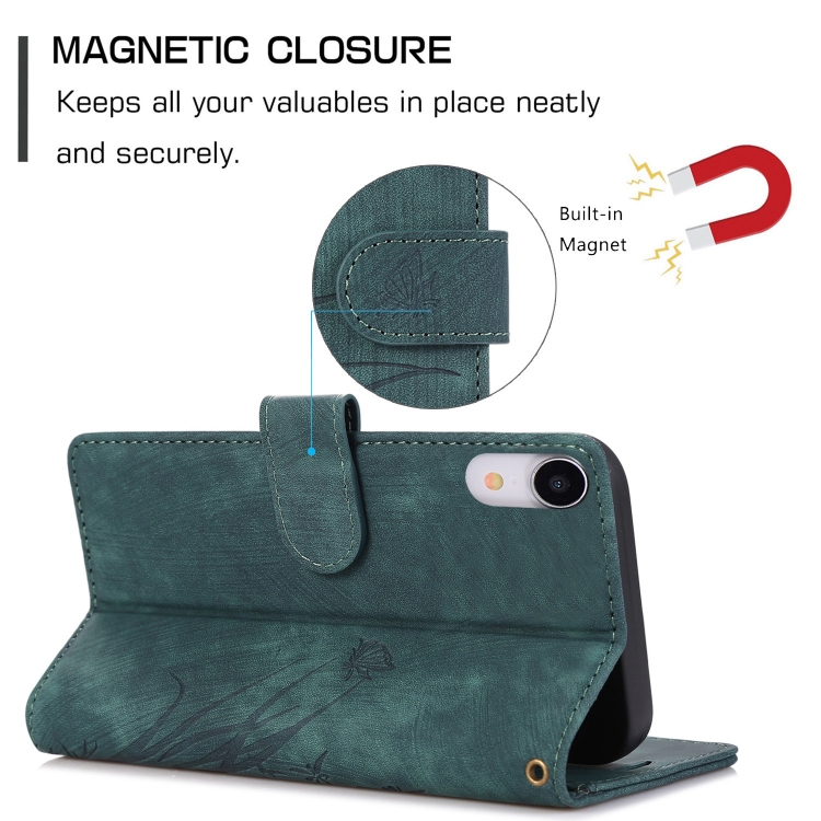 Funda para Teléfono iPhone Xr Cuero Relieve Mariposa Orquídea (Verde)