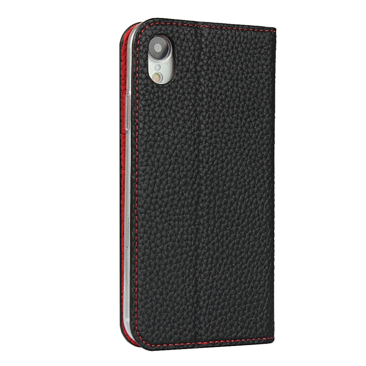 Funda de Teléfono iPhone Xr Litchi Cuero Genuino (Negro)