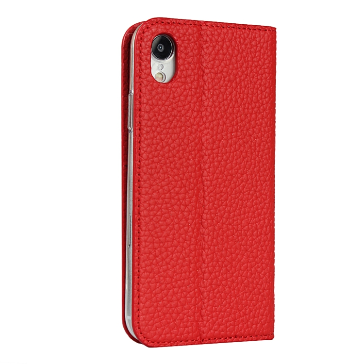 Funda de Teléfono iPhone Xr Litchi Cuero Genuino (Rojo)