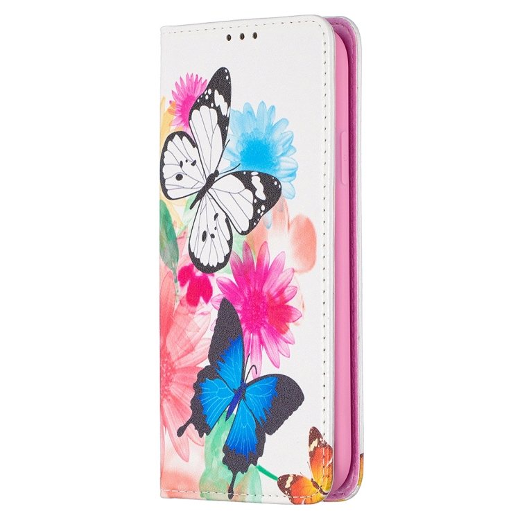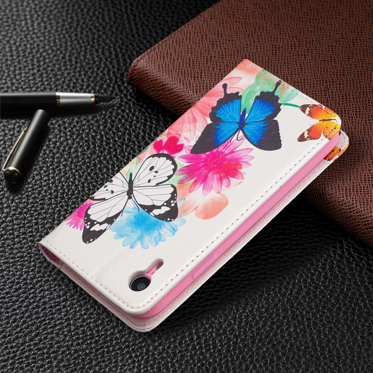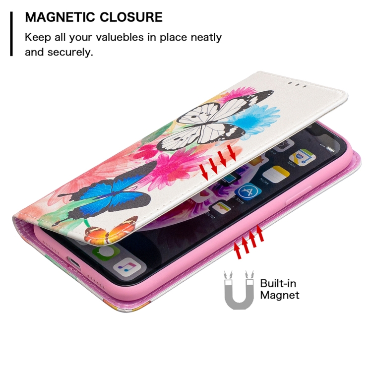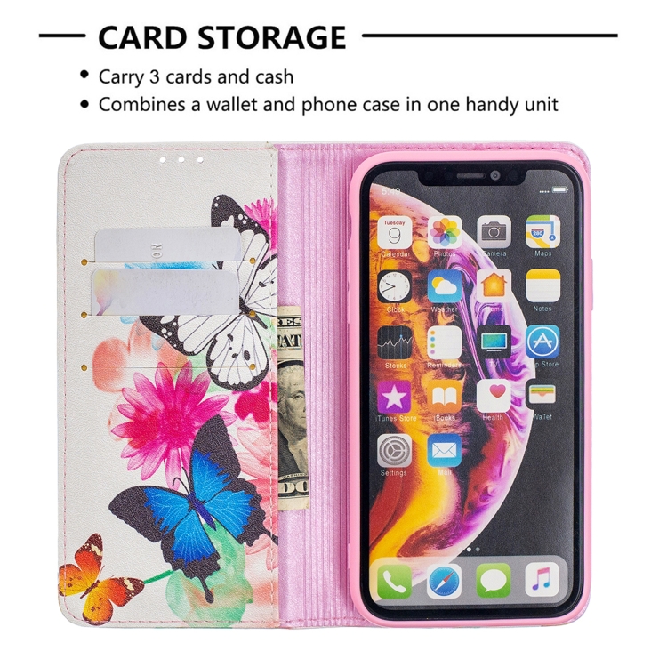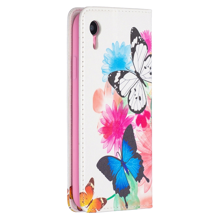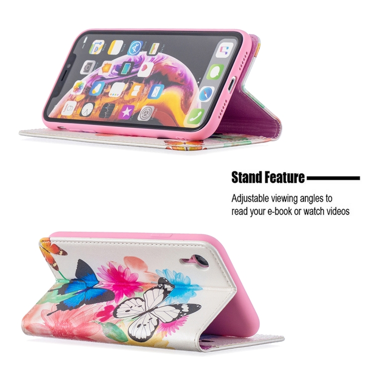 Estuche de Cuero Pu iPhone Xr Patrón Dibujo a Color Tapa Horizontal Magnética Invisible Soporte Ranuras Tarjetas Billetera (Dos Mariposas)