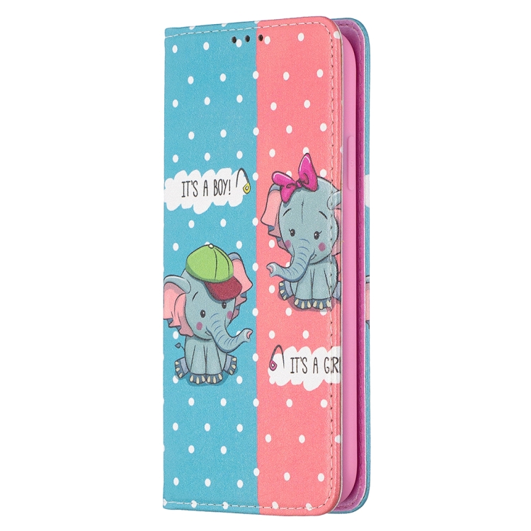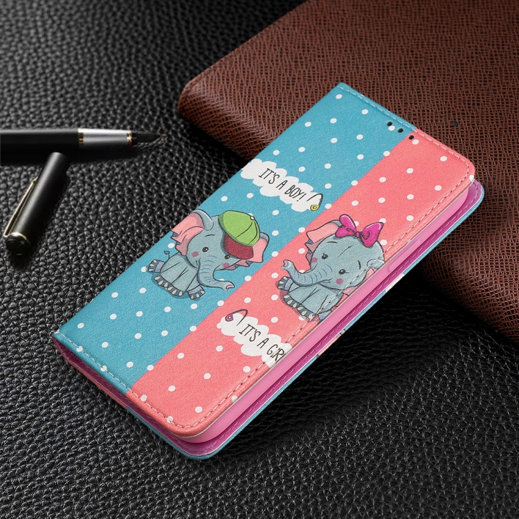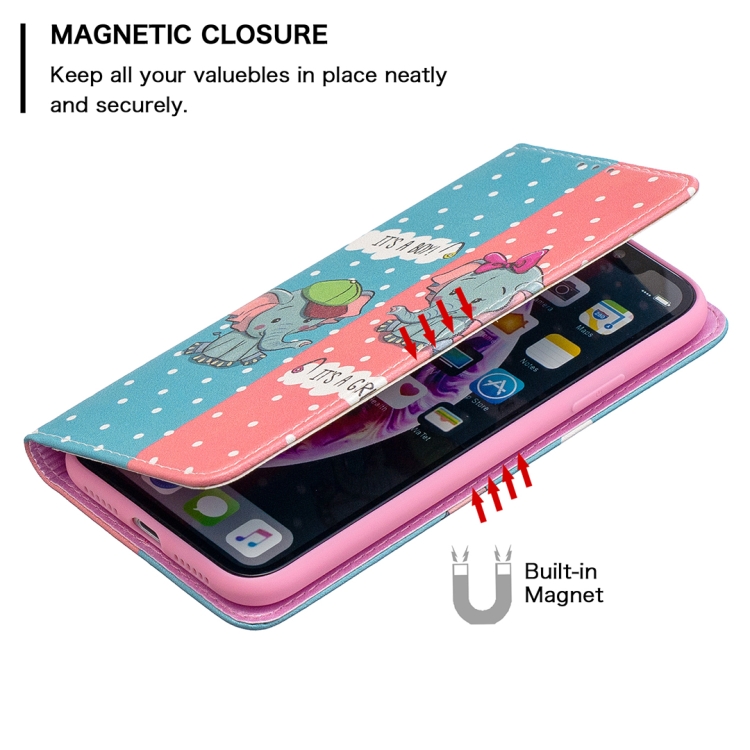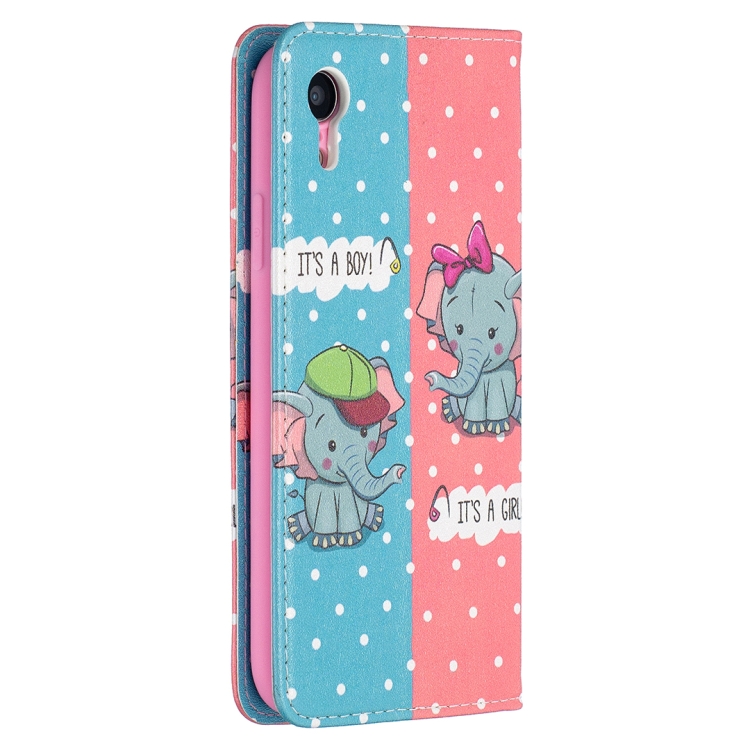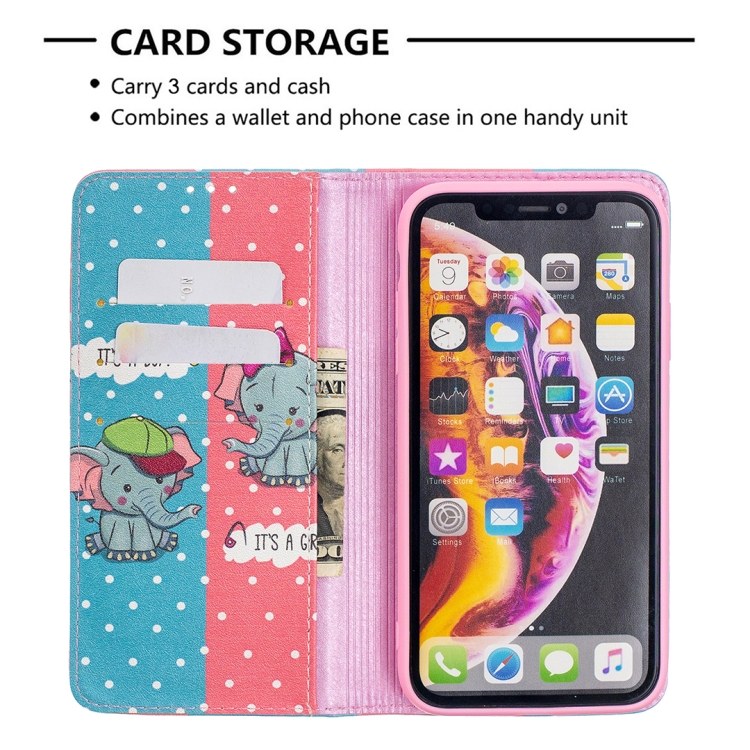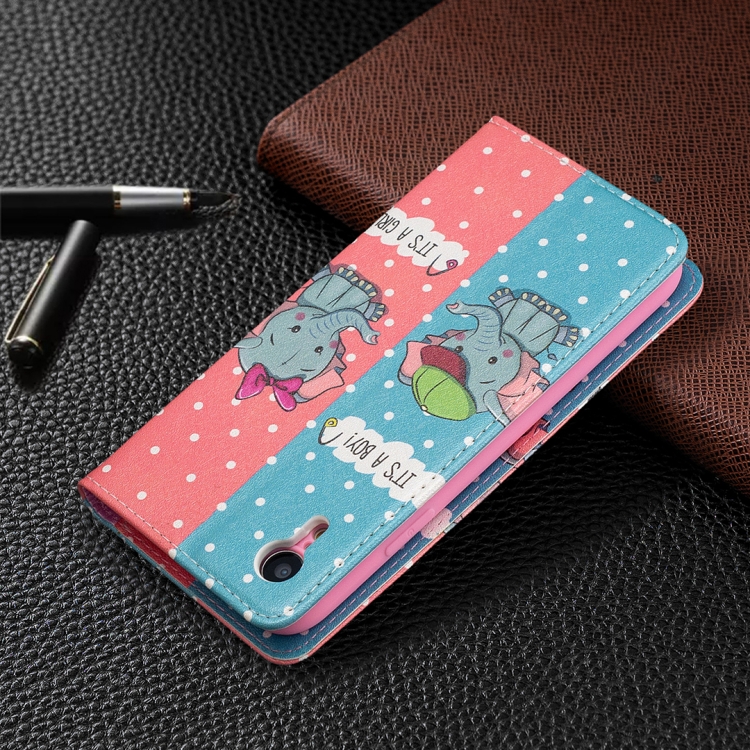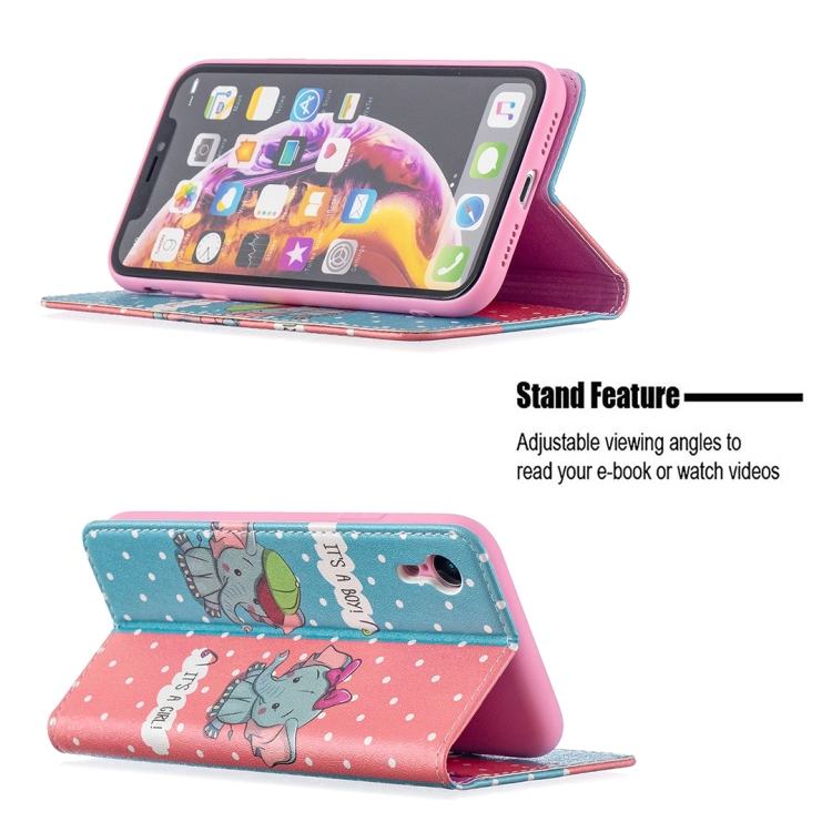 Funda para iPhone Xr Cuero de PU con Tapa Horizontal Magnética Invisible Soporte Ranuras para Tarjetas Billetera (Elefante)