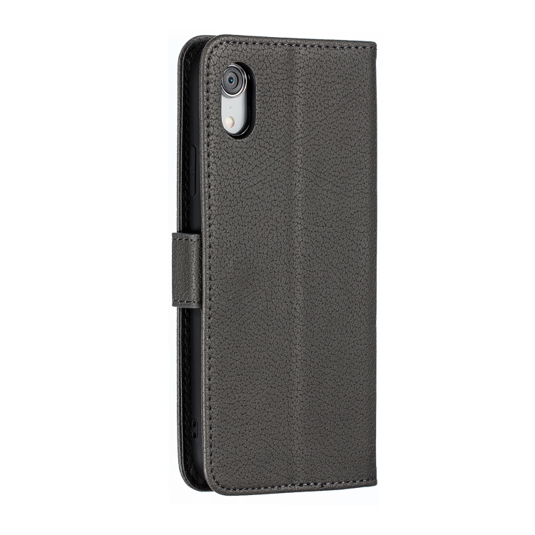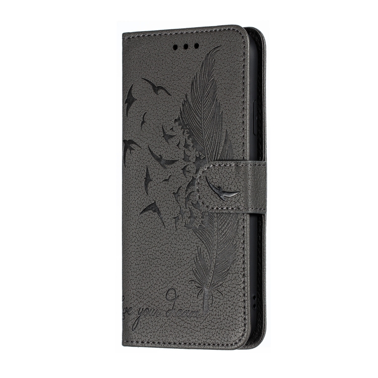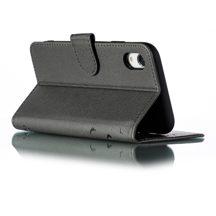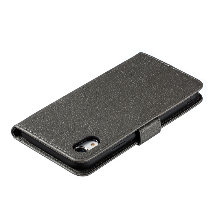 Funda de Cuero iPhone Xr Patrón de Plumas Litchi Textura Tapa Horizontal Billetera Soporte Ranuras para Tarjetas (Gris)