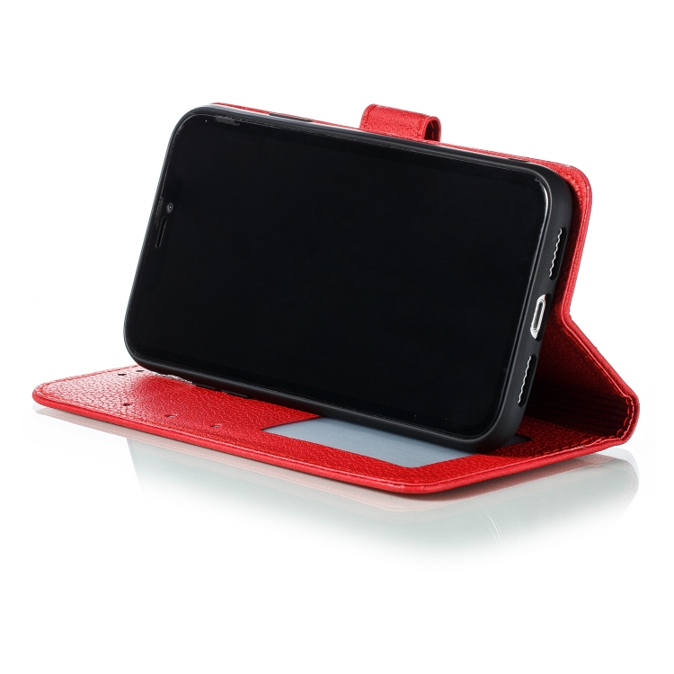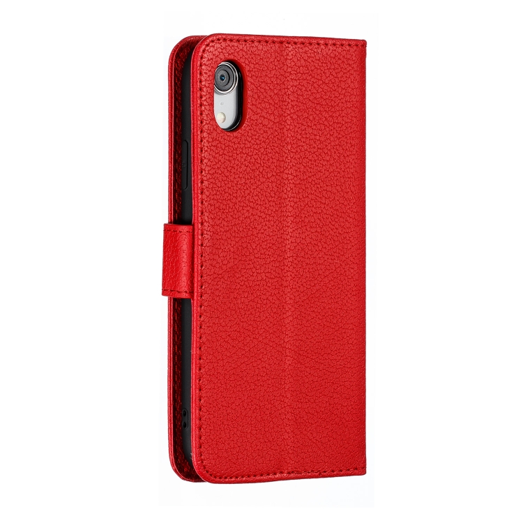 Funda para iPhone Xr Litchi Textura Cuero con Tapa Horizontal Billetera Soporte Ranuras (Rojo)
