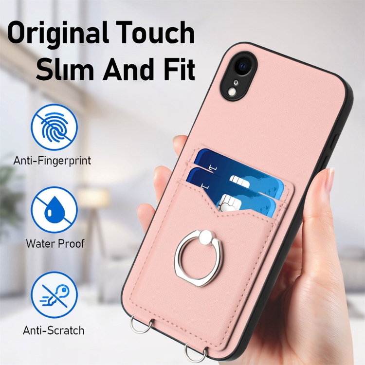 Funda para Teléfono iPhone Xr R20 Soporte Tarjeta Anillo Cuerda Cruzada (Rosa)