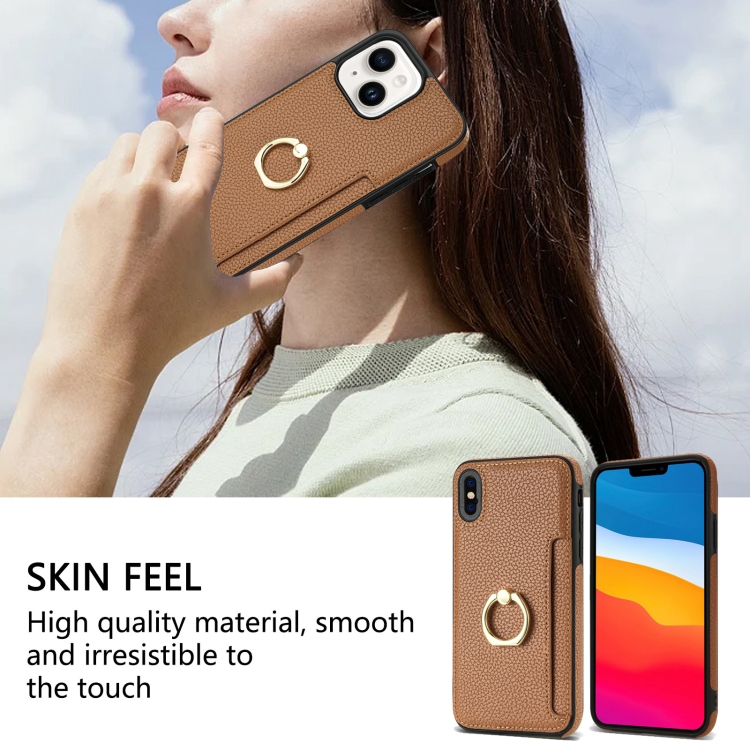Funda Trasera para iPhone Xr Ring Card Litchi de Cuero (Marrón)