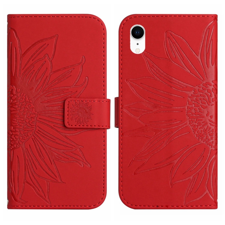 Funda para iPhone Xr Skin Feel Sun Flower Pattern de Cuero con Tapa y Cordón (Rojo)