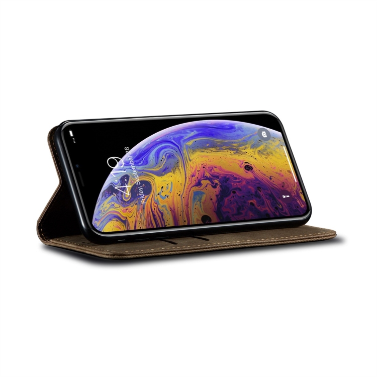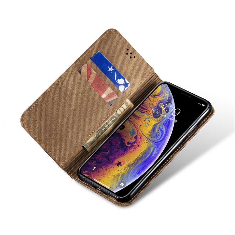 Funda para iPhone Xr Cuero con Tapa Horizontal Soporte Ranuras Tarjetas Billetera (Caqui)