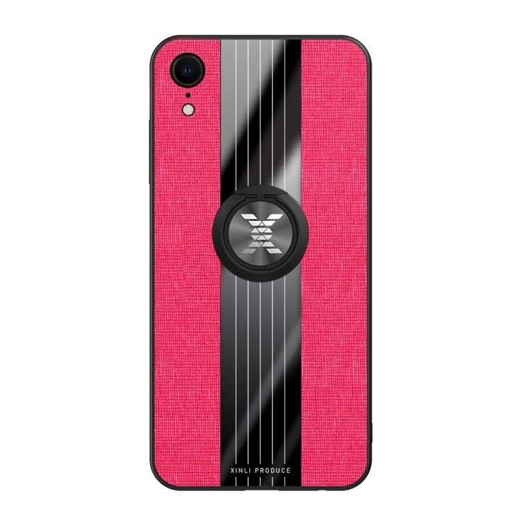 Estuche Protector TPU Xinli para iPhone Xr a Prueba de Golpes con Textura de Tela y Soporte para Anillo (Rojo)