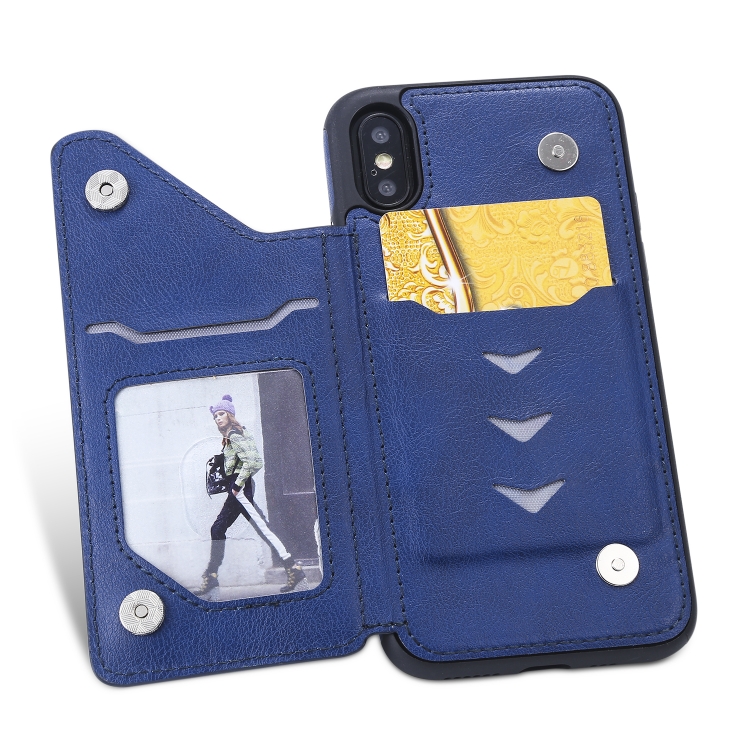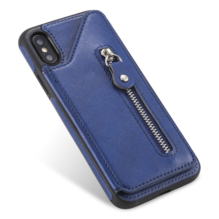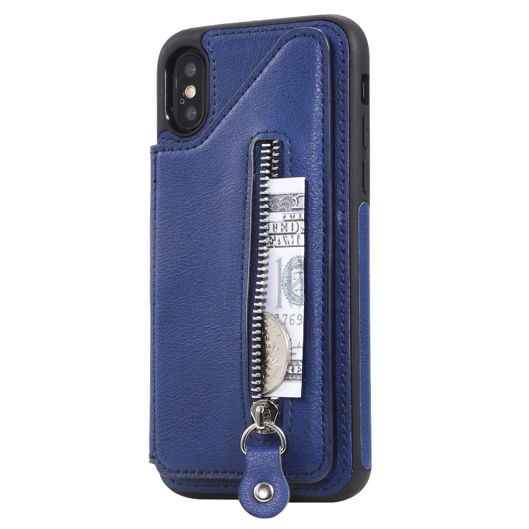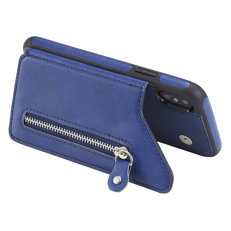 Funda Protectora para iPhone Xs Doble Hebilla Cremallera a Prueba de Golpes (Azul)