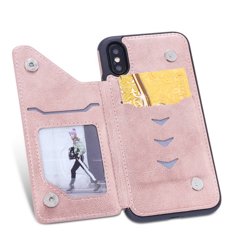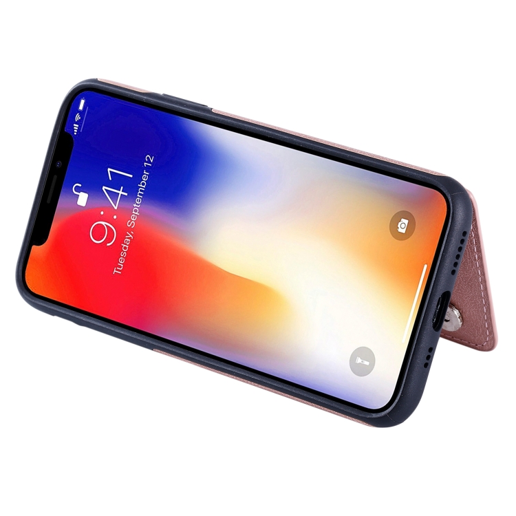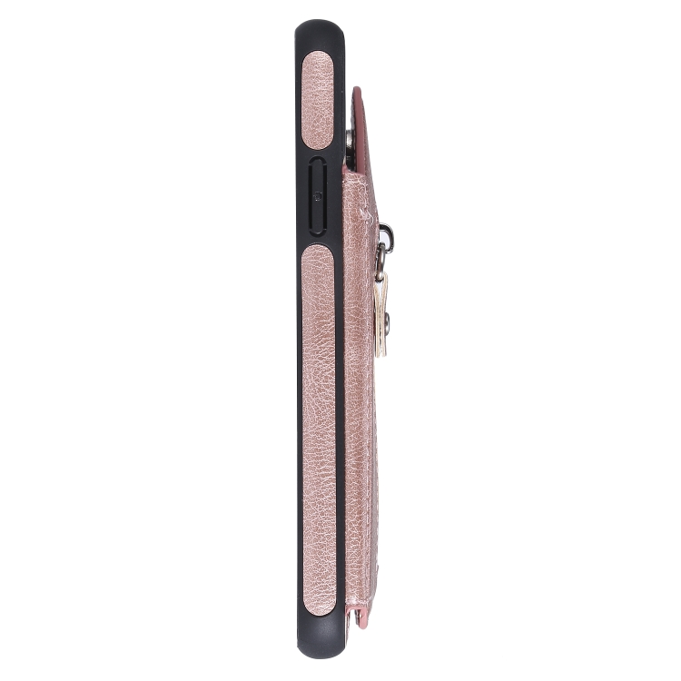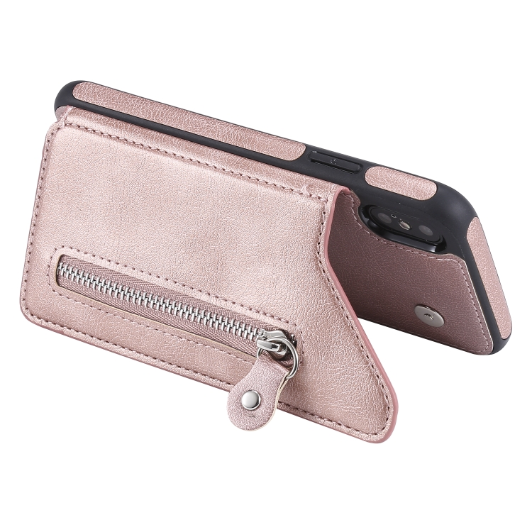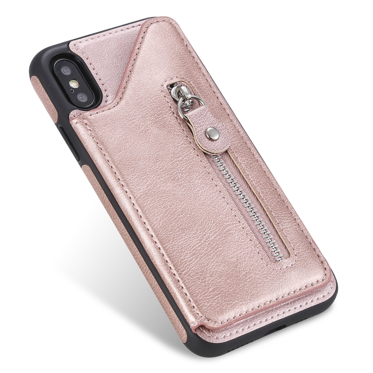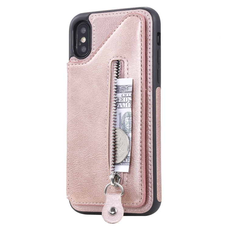Funda Protectora para iPhone Xs Doble Hebilla Cremallera a Prueba de Golpes (Oro Rosa)