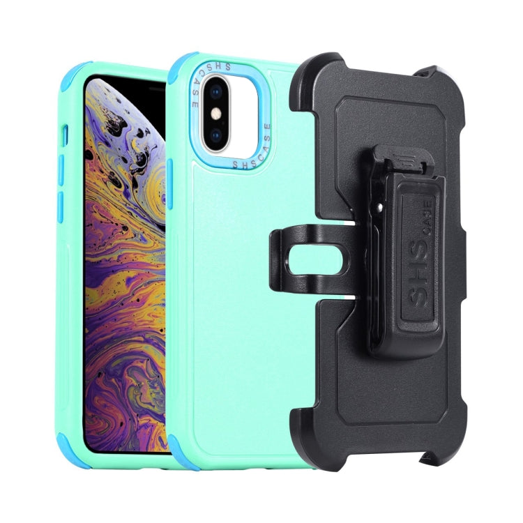 Funda para Teléfono iPhone Xs Max 3 en 1 PC y TPU con Funda Deslizante (Verde Hierba + Azul Cielo)