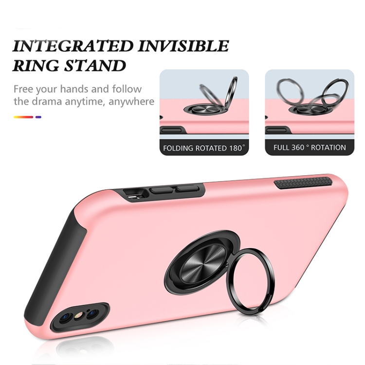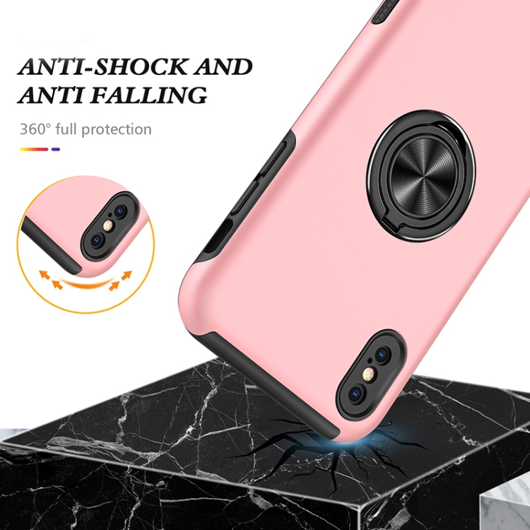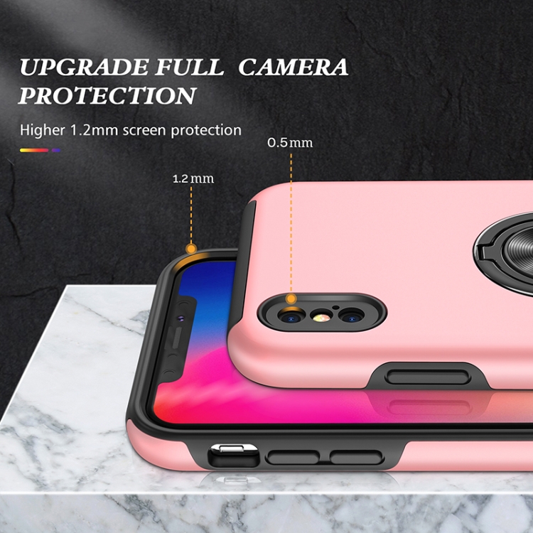 Funda para Teléfono iPhone Xs Max Anillo Magnético Kickstand a Prueba de Golpes (Oro Rosa)