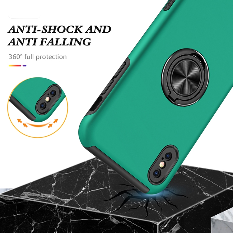Funda para iPhone Xs Max Anillo Magnético Kickstand a Prueba de Golpes (Verde Oscuro)