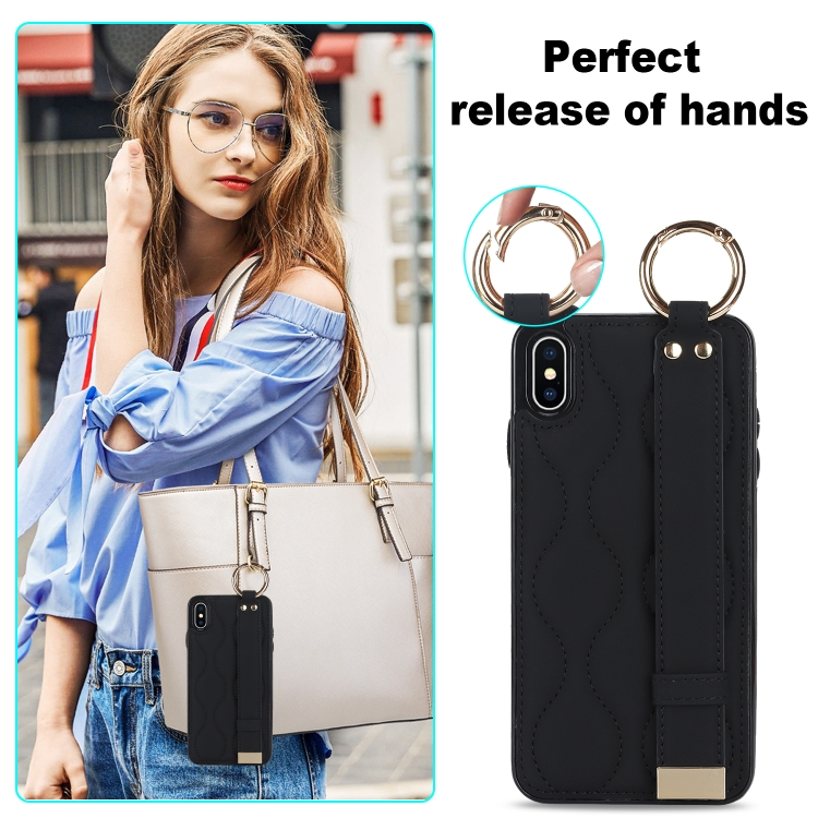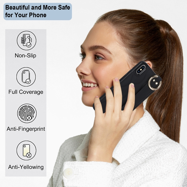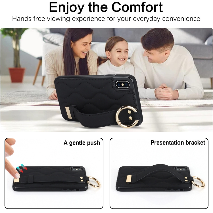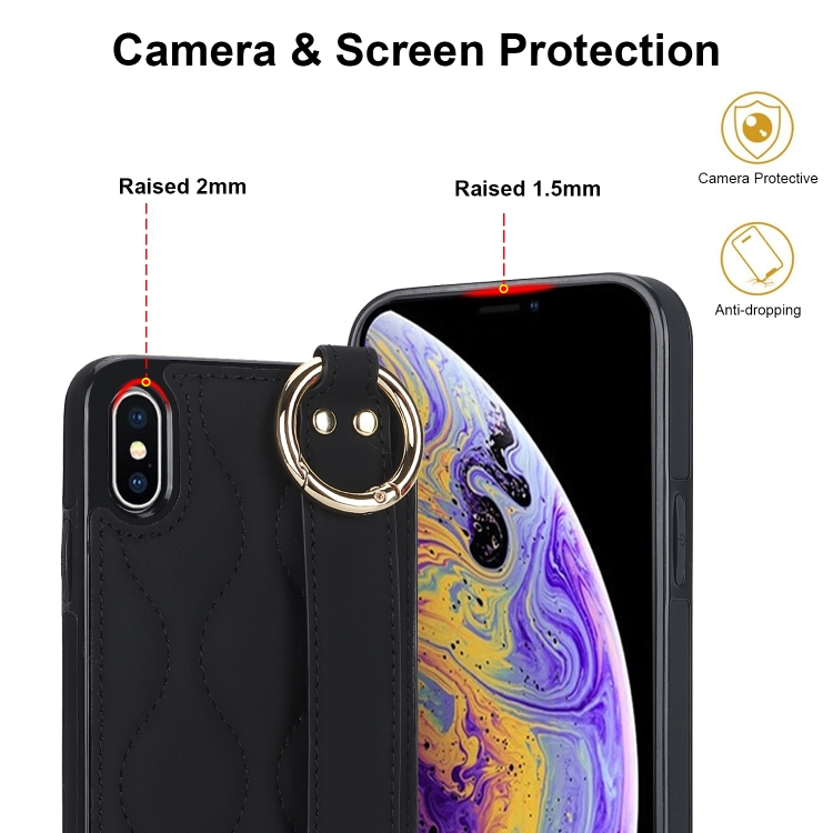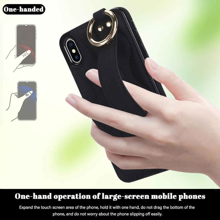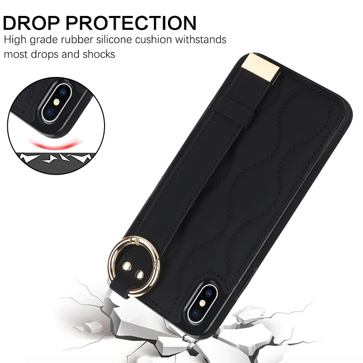 Funda para Teléfono iPhone Xs Max Antideslizante Cobertura Completa Anillo PU con Muñequera (Negro)