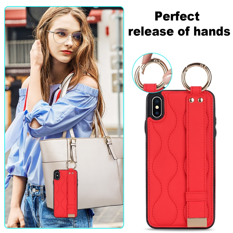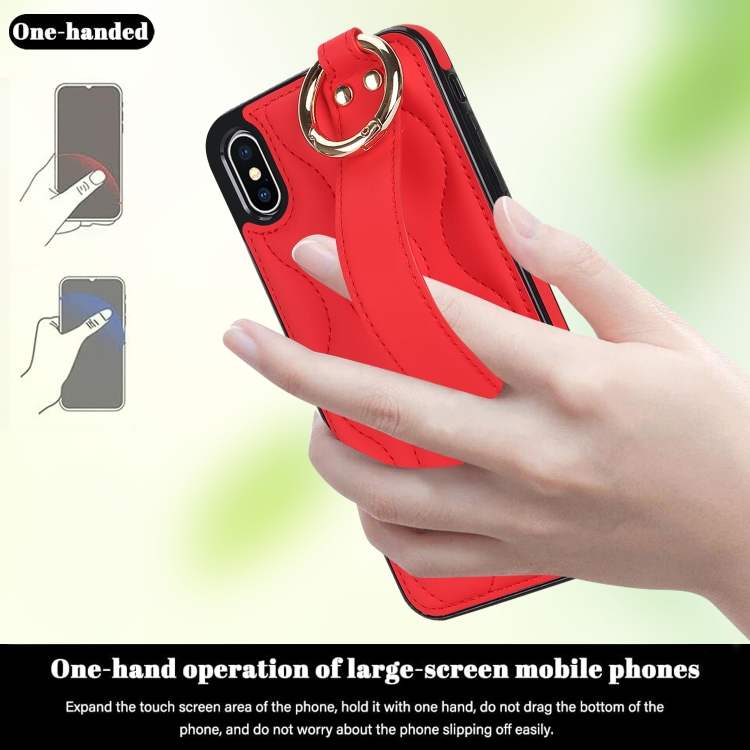 Funda para iPhone Xs Max Antideslizante Cobertura Completa Anillo PU con Muñequera (Rojo)