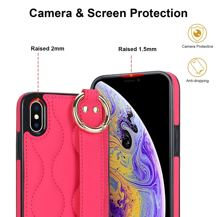 Funda para Teléfono iPhone Xs Max Antideslizante Cobertura Completa Anillo PU con Muñequera (Rosa Roja)