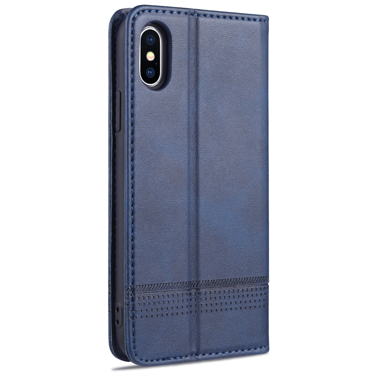 Funda de Cuero Azns para iPhone Xs Max con Tapa Horizontal Textura Pantorrilla Magnética Ranuras para Tarjetas Soporte Billetera (Azul Oscuro)