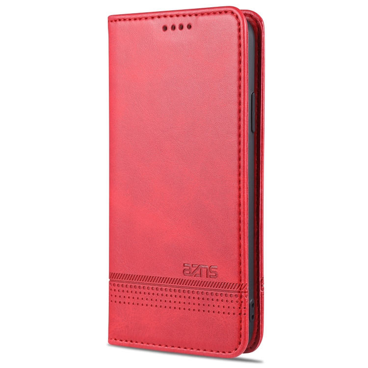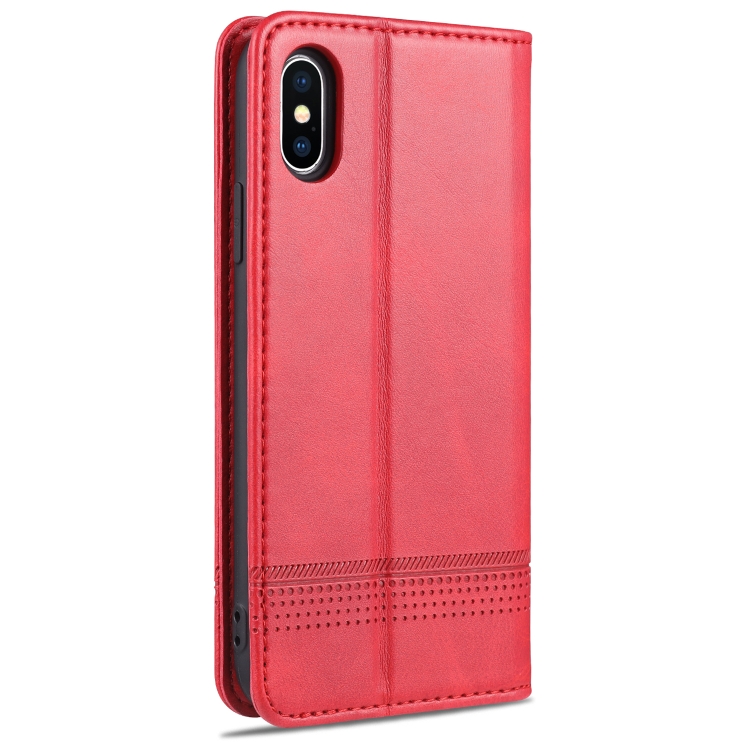 Funda de Cuero Azns para iPhone Xs Max con Tapa Horizontal Textura Pantorrilla Magnética Ranuras Tarjetas Soporte Billetera (Rojo)