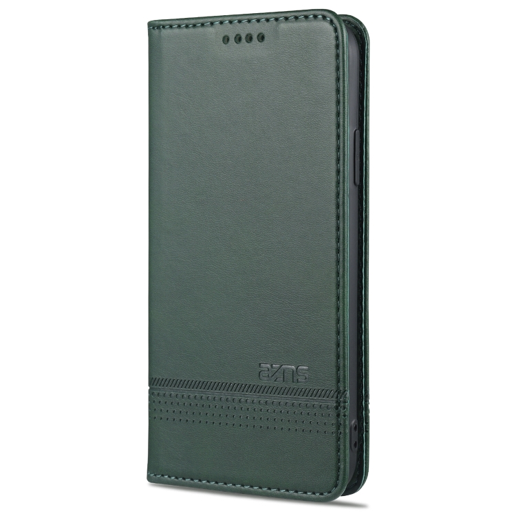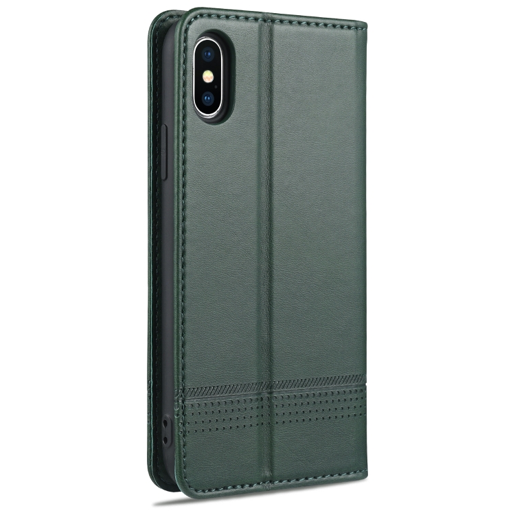 Funda de Cuero Azns para iPhone Xs Max con Tapa Horizontal Textura de Pantorrilla Magnética Ranuras para Tarjetas Soporte Billetera (Verde Oscuro)