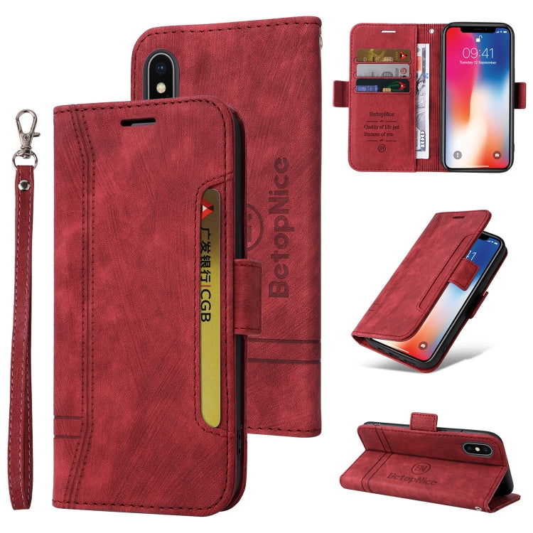 For iPhone XS Max BETOPNICE Double-sided Buckle Leather Case (Red)
