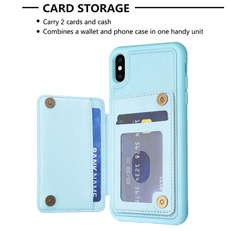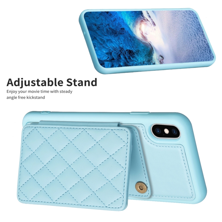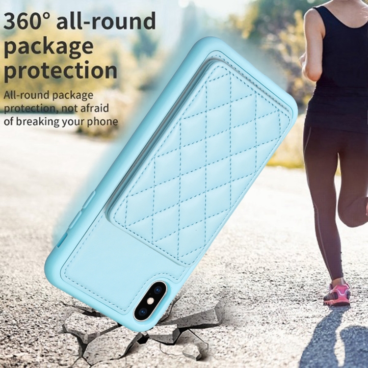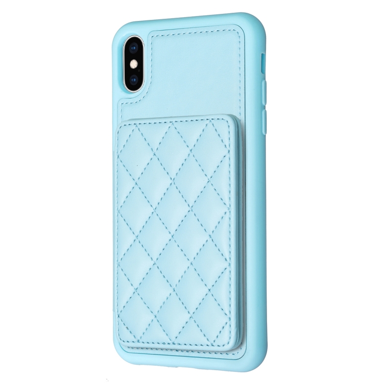 Funda para iPhone Xs Max BF25 Square Plaid Card Bag Holder Phone Case (Azul)