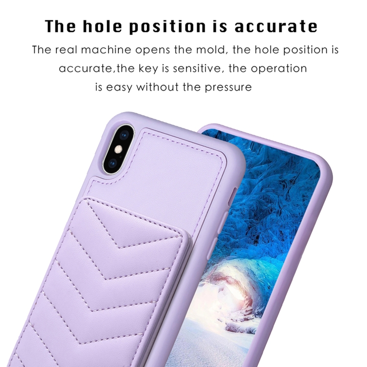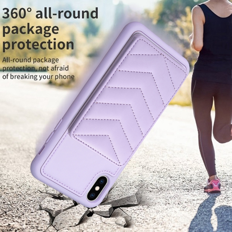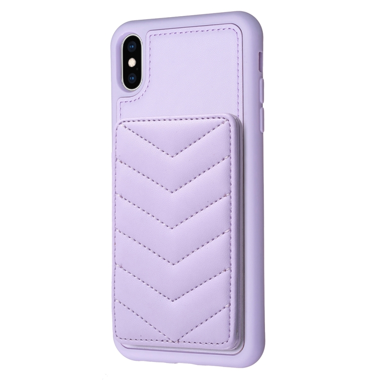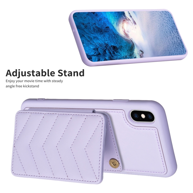 Funda para iPhone Xs Max Bf26 Wave Pattern Card Bag Holder con soporte para tarjetas (Púrpura)