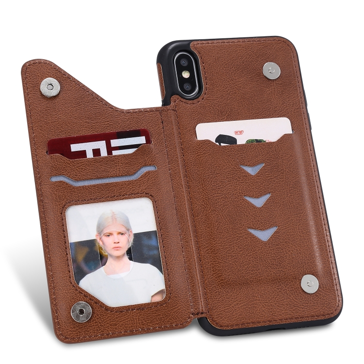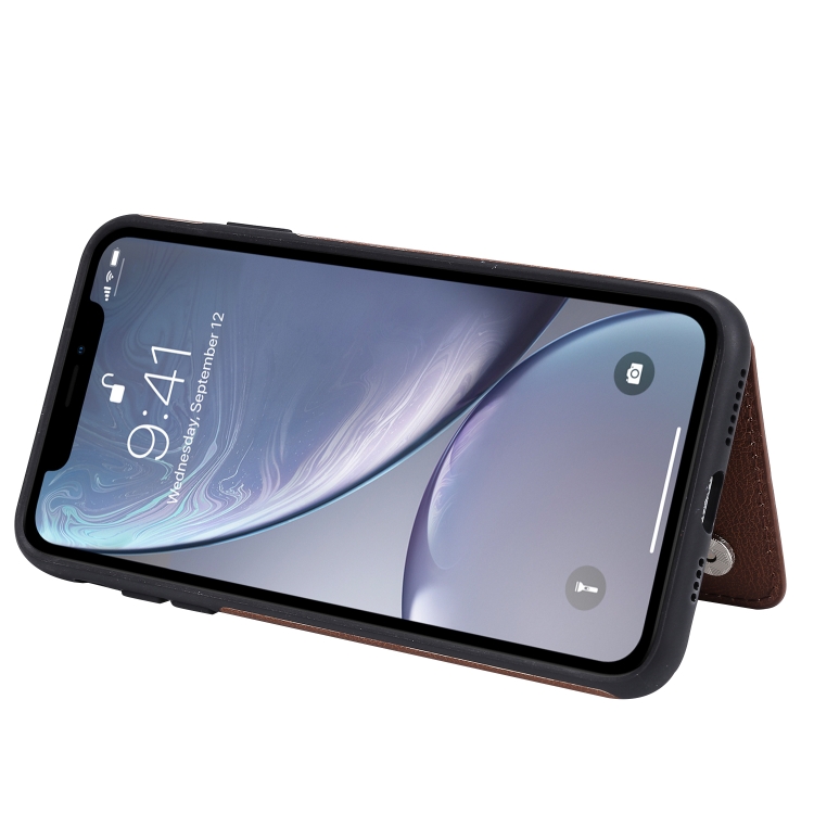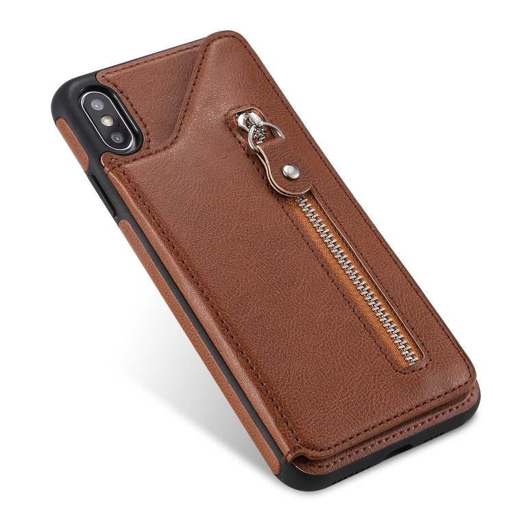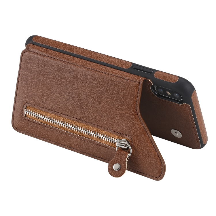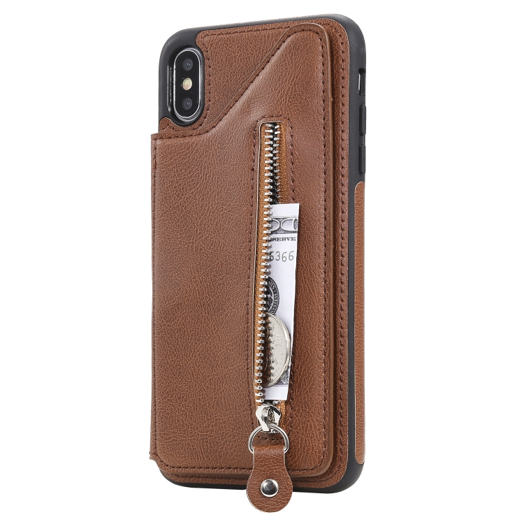 Funda Protectora para iPhone Xs Max Doble Hebilla Cremallera a Prueba de Golpes (Marrón)