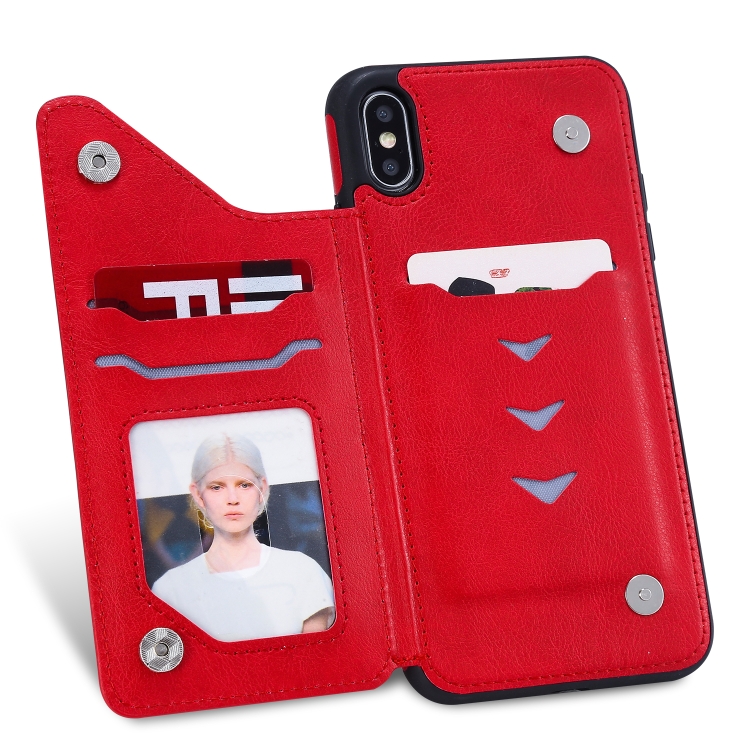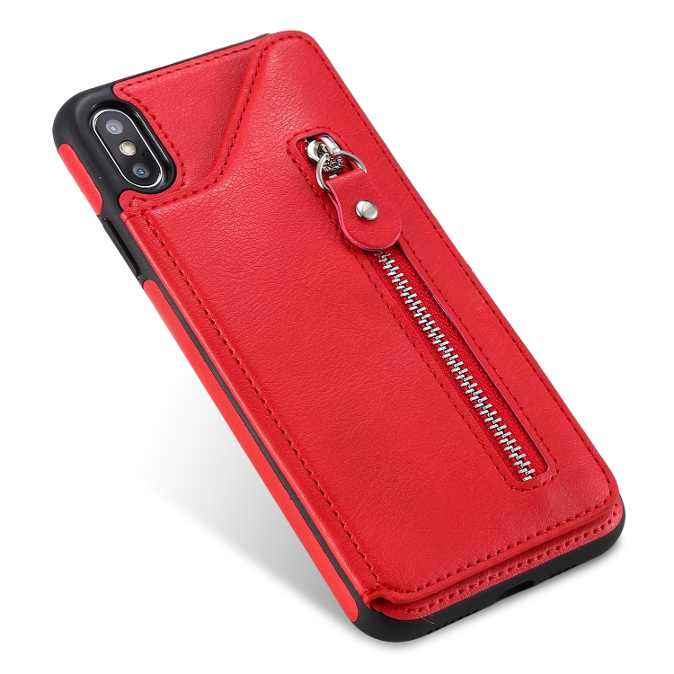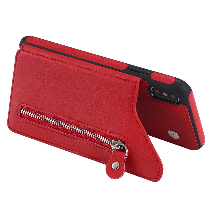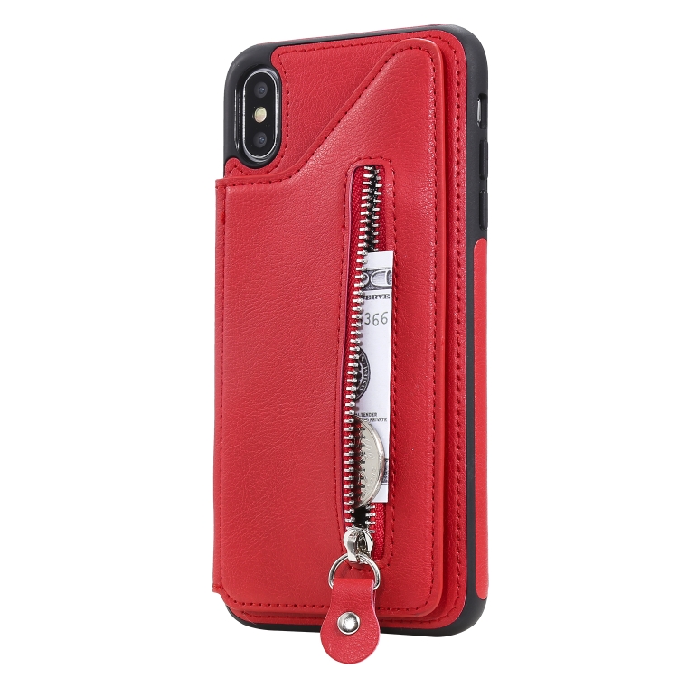 Funda Protectora para iPhone Xs Max Doble Hebilla Cremallera a Prueba de Golpes (Rojo)