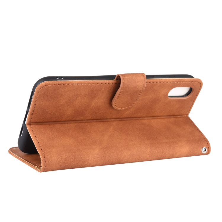 Funda para iPhone Xs Max Cuero PU con Hebilla Magnética Flip Horizontal Soporte y Ranuras para Tarjetas (Marrón)