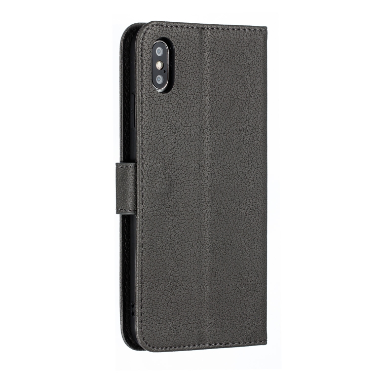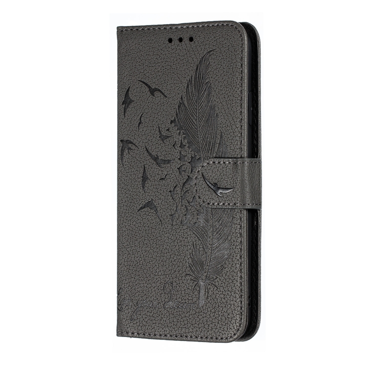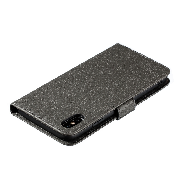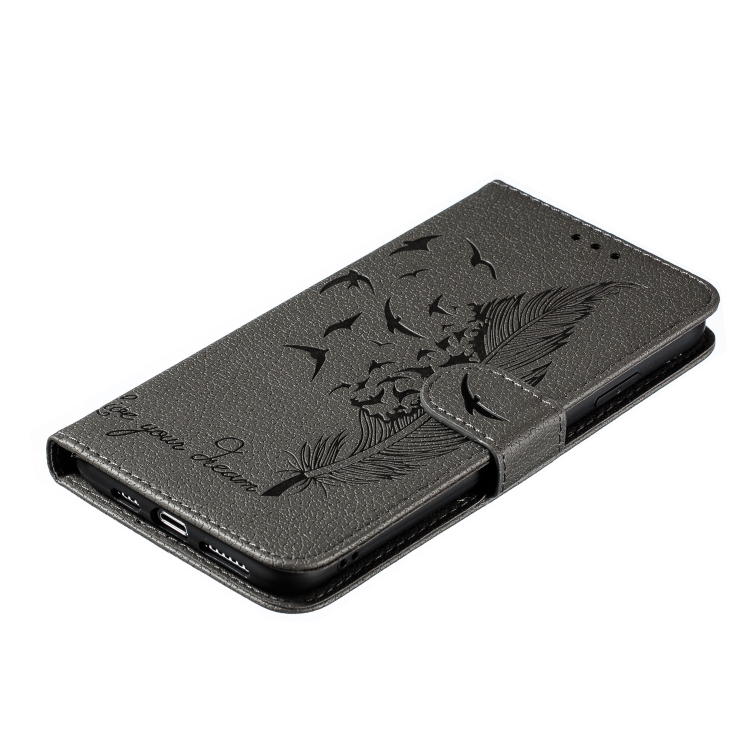 Funda de Cuero iPhone Xs Max Feather Pattern con Tapa Horizontal Billetera Soporte Ranuras para Tarjetas (Gris)