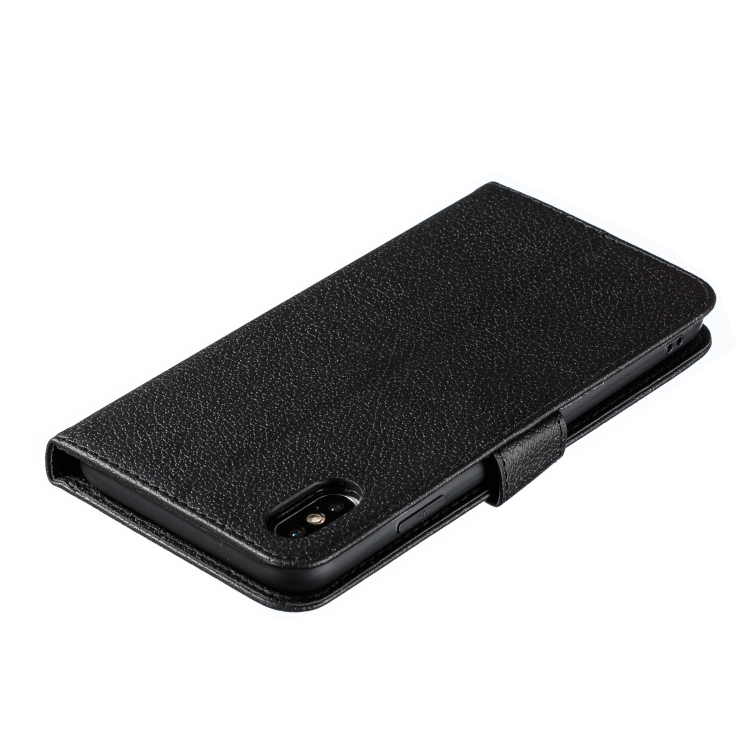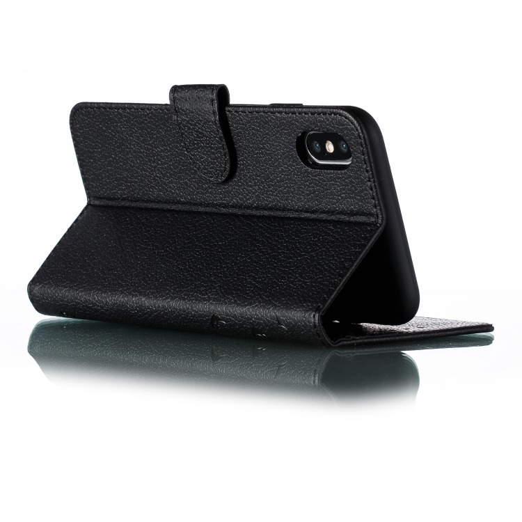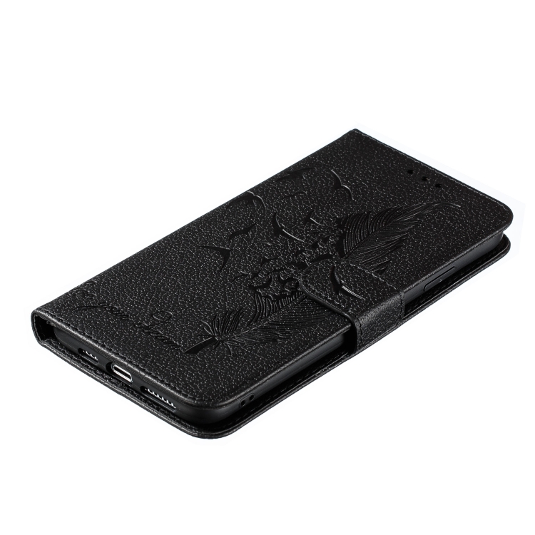 Funda de cuero iPhone Xs Max Feather Pattern con tapa horizontal billetera soporte y ranuras para tarjetas (Negro)