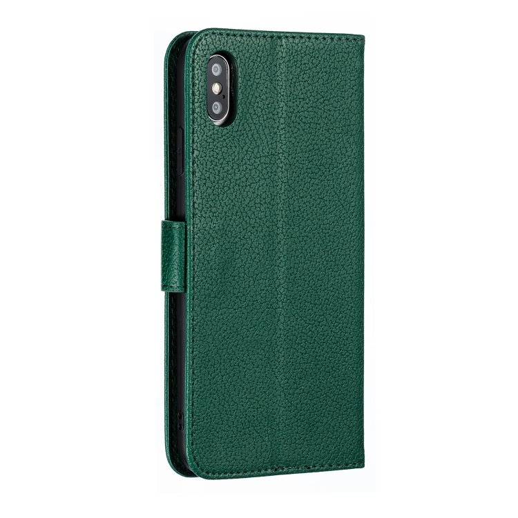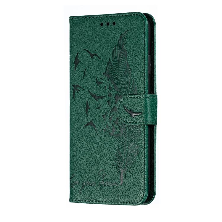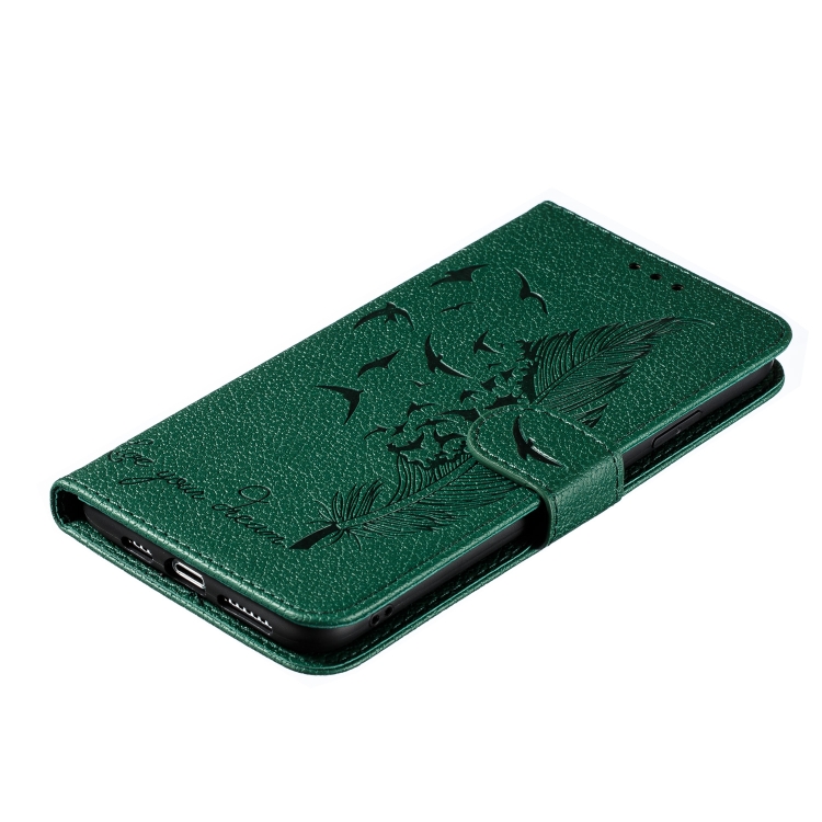 Funda de Cuero para iPhone Xs Max Feather Pattern con Tapa Horizontal Billetera Soporte y Ranuras para Tarjetas (Verde)