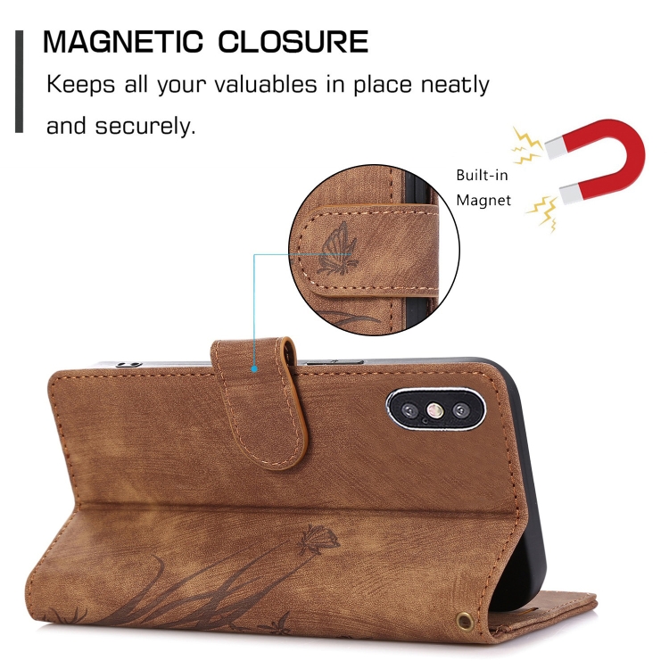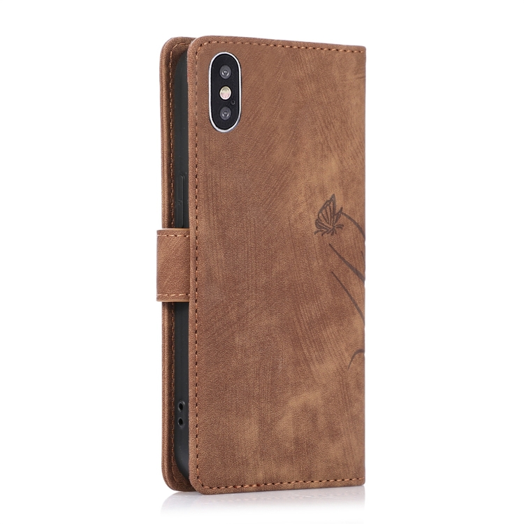 Funda para Teléfono iPhone Xs Max Cuero Relieve Mariposa Orquídea (Marrón)